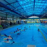 A atividade ocorreu na piscina do complexo esportivo da UNISC e foi conduzida pela professora Francesca Sonda, docente do curso de Educação Física da UNISC. A intervenção consistiu em uma vivência de adaptação ao meio líquido, associada a exercícios básicos de hidroginástica, respeitando os níveis de familiaridade dos estudantes com o ambiente aquático.