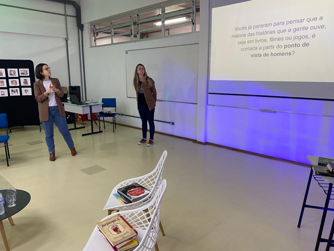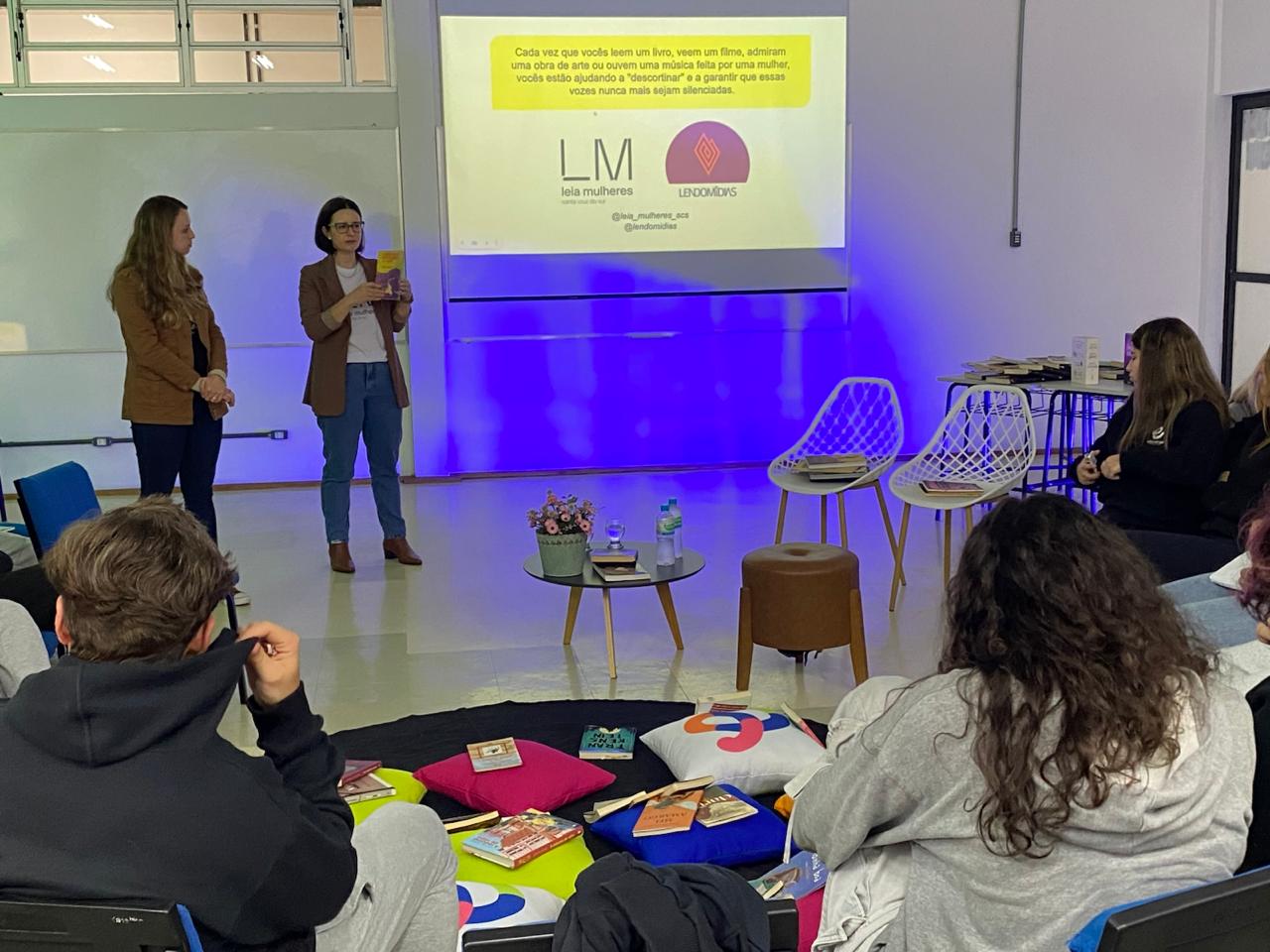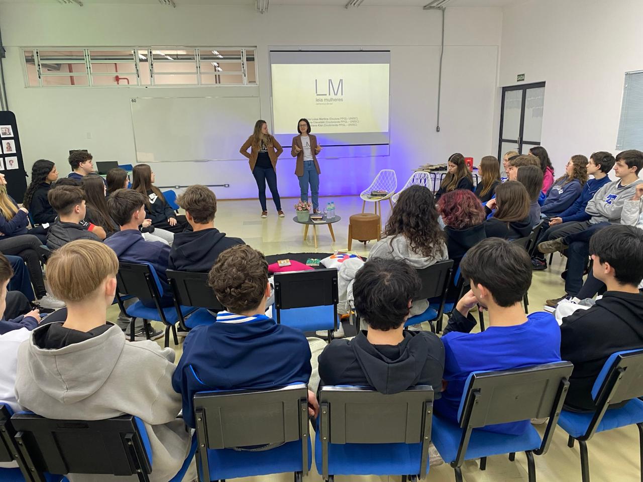 No dia 08 de setembro, as turmas 101 e 102, acompanhadas pelas professoras Catiussa Martin (Língua Portuguesa) e Brenda de Gois Cardoso (Leitura e Produção de Textos), participaram de uma palestra especial com as cofundadoras do grupo de leitura Leia Mulheres, e integrantes do LendoMídias, Rosiana Kist e Luana Ciecelski.