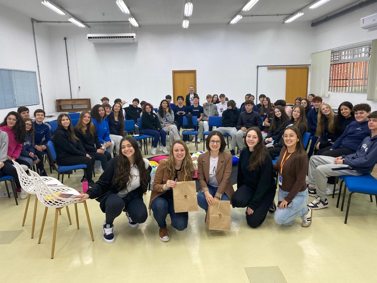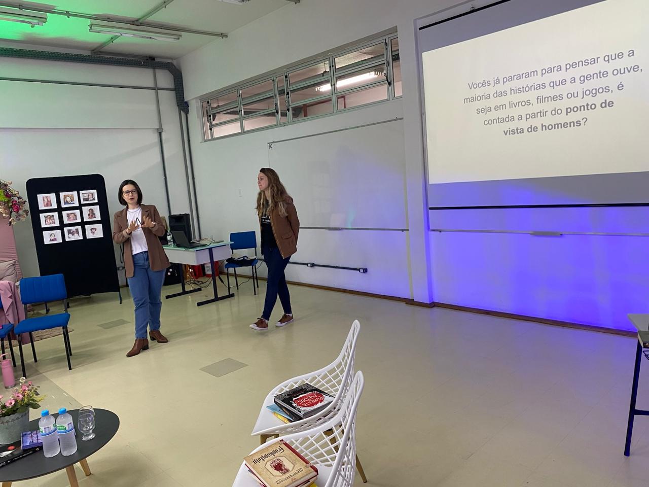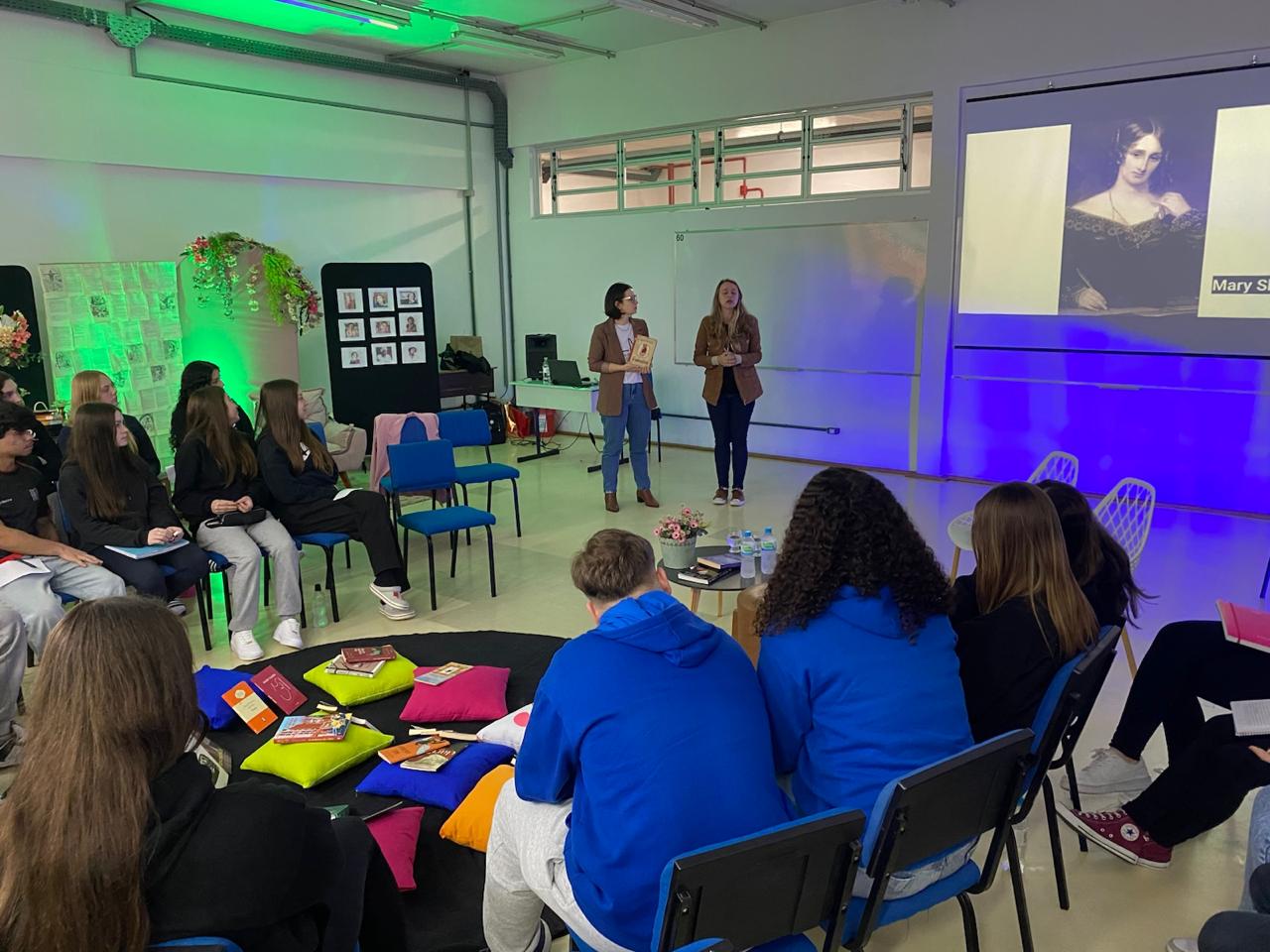 No dia 08 de setembro, as turmas 101 e 102, acompanhadas pelas professoras Catiussa Martin (Língua Portuguesa) e Brenda de Gois Cardoso (Leitura e Produção de Textos), participaram de uma palestra especial com as cofundadoras do grupo de leitura Leia Mulheres, e integrantes do LendoMídias, Rosiana Kist e Luana Ciecelski.